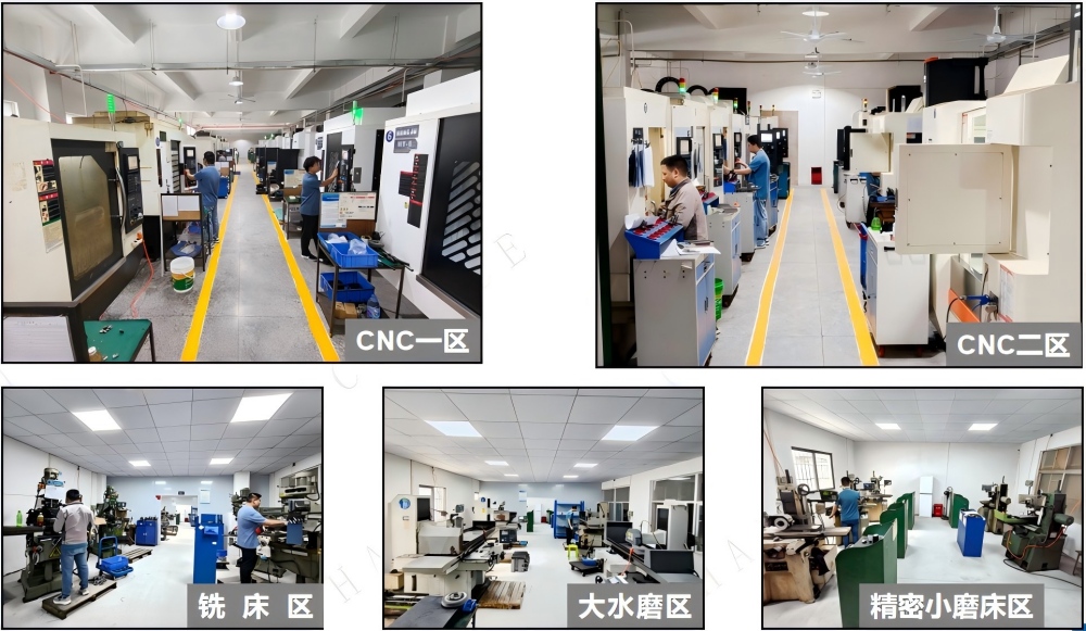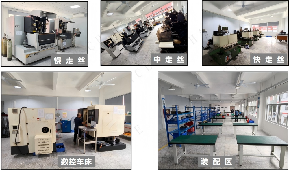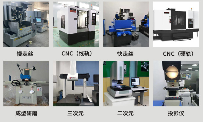 公司现有厂房面积4000余平方米,拥有精密加工设备CNC(法兰克、台群)、磨床(准力)、铣床、慢走丝(沙迪克)、快走丝共40余台;